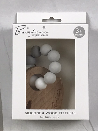 This Collection of Bambino Silicone 7 Wood Teethers by Juliana make the perfect New Baby or Baby Shower Gift. Presented in a lovely Gift Box , this collection of teethers are perfect for massaging baby's tender gums and for stimulating emerging teeth.